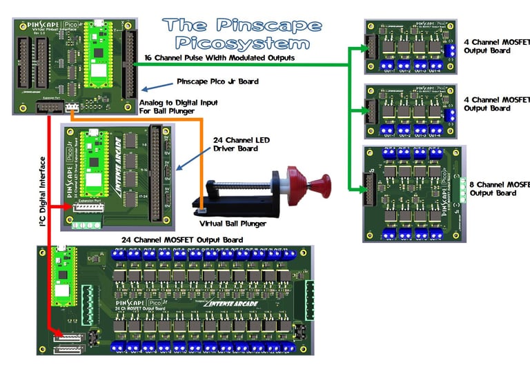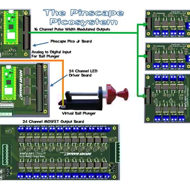 Intense Arcade is the only cabinet manufacturer that also designs and manufactures VP interface Controller boards that allow the use of arcade buttons, ball plungers, nudge sensors (accelerometer) and outputs to accurately emulate a real pinball machine. I partnered with Michael J. Roberts (AKA MJR) using his amazing tried and true Pinscape software that makes configuring and integrating an effortless task. My full line of boards are scalable allowing customers to invest in a basic system that can be expanded up and out. I call this the Pinscape Picosystem.